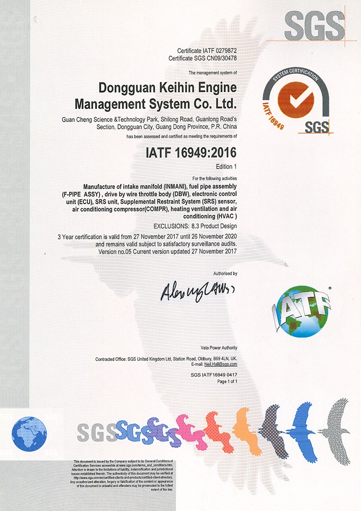 我司在2004年取得ISO9001品质认证,2005年取得ISO14001环境认证,2007年取得IS16949认证,2017年取得IATF16949认证。